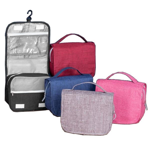 Nécessaire em Nylon Oxford resistente à água e alça de mão prática, ele traz várias opções para deixar tudo bem ajeitado: desde o seu compartimento principal com visor em tela de nylon e outros dois bolsos de formatos distintos, sendo um em PVC com fechamento em zíper e o outro confeccionado em tela de nylon respirável. E para deixar a organização mais ágil, o nécessaire dispõe de um gacho plástico para mantê-lo pendurado enquanto organiza os objetos em cada compartimento. Gravação da logomarca em 1 cor já inclusa.